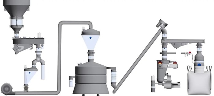 - 旋風分離器與包裝間:BFM® 無需工具、可迅速拆裝,確保了集塵系統處於高效狀態。BFM® 的充氣式**噸袋/小包充裝膨脹接頭**能緊固散裝袋袋口,防止物料污染與逸散流失。